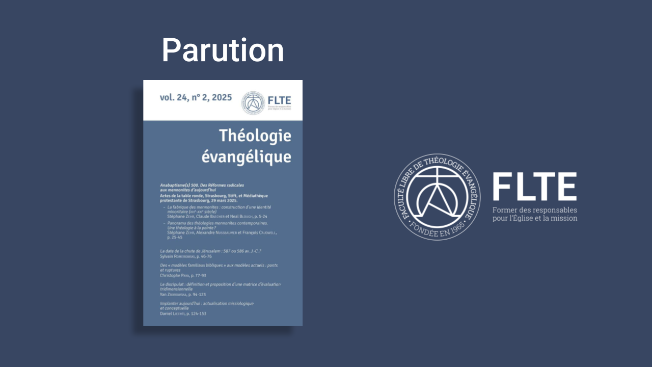 Le 7 Juin 2025 s’est tenu notre Colloque Théologique annuel sur le thème : « Redécouvrir les prophètes bibliques : Voix anciennes, message contemporain » avec les interventions de Christophe Paya, Matthieu Richelle, Noélie Claudel, Emile Nicole, Jacques Nussbaumer et Timothée Minard. C’était aussi l’occasion de fêter les 60 ans de la FLTE, vous retrouverez plus d’infos...